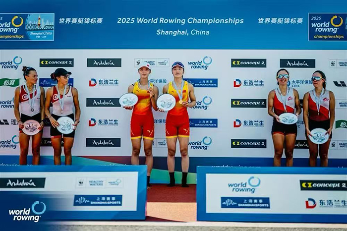 On September 25, 2025, the World Rowing Championships, organized by the World Rowing Federation, was held for the first time in Qingpu District, Shanghai, China. A total of 1,203 athletes and coaches from 55 countries and regions participated in the event. Fu Ling, a student majoring in Sports Training (Class of 2023) from the School of Sports and Health Engineering at our university, represented the Chinese National Rowing Team.